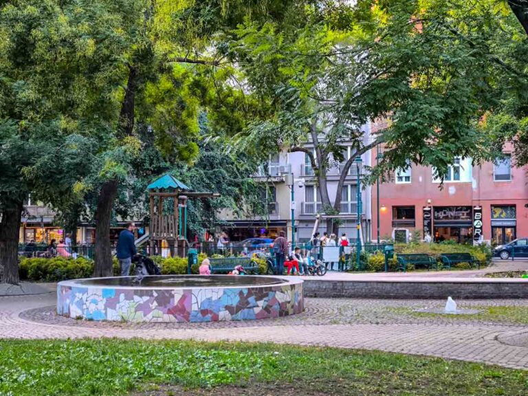 A Ferenc téren én top 3-as legaktívabb magyarországi közéletet láttam az itteni részben parkos, részben térköves üde téren és ez főleg szomszédsági jelenetekből áll, ami remek tendencia, mert sok helyen fájón hiányzik ez a országunkból. Itt lüktetett: beszélgetésekkel, családokkal, gyerekekkel, idősekkel, egyáltalán emberekkel a padokon, pórázvégeken ismerkedő kutyákkal, kártyázókkal. Ezt a szintet Budapesten is csak két másik nem turistás téren/parkban láttam. Szívderítő volt ezt itthon látni. Egyharmad Bulgária.(Bulgária az eddigi kedvencem közélet szempontjából)