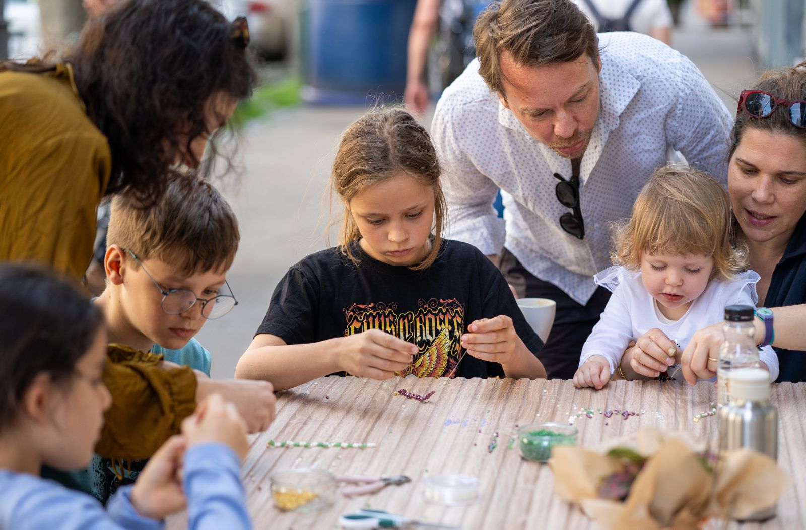 Utunk innen a BBBKultPontba vezet, ahol a The Mama Kin ékszer nyárindító pop up vására és workshopja zajlik, tovább sétálva a Gárdonyi téren pedig már igazi programkavalkád vár minket: lehet kézműveskedni, fűben feküdni, sőt még a Sneaker Inkerrel egy kis cipőfestésbe is belebonyolódtunk.