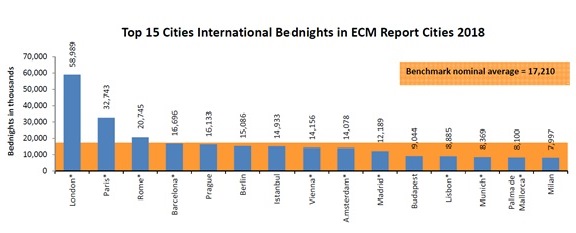 Az ECM adatfelvétele alapján, 2018-ban az előző évihez képest 4,8 százalékos vendégéjszaka-gyarapodást mértek a tagvárosokban, ami 645,3 millió vendégéjszakát jelent az európai városlátogató turizmus számára. A nemzetközi forgalom 3,7 százalékkal bővült, ami egyben azt is jelenti, hogy az ECM mérései során először, a külföldi vendégéjszakák meghaladták a 400 milliós lélektani határt. Az utóbbi öt év (2014-2018) dimenziójában mind az összesített (külföldi, belföldi), mind pedig a nemzetközi vendégéjszaka adatoknál 20%-ot meghaladó növekedést mértek Európa-szerte.