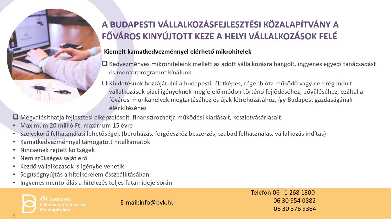 A BUDAPESTI VÁLLALKOZÁSFEJLESZTÉSI KÖZALAPÍTVÁNY A FŐVÁROS KINYÚJTOTT KEZE A HELYI VÁLLALKOZÁSOK FELÉ