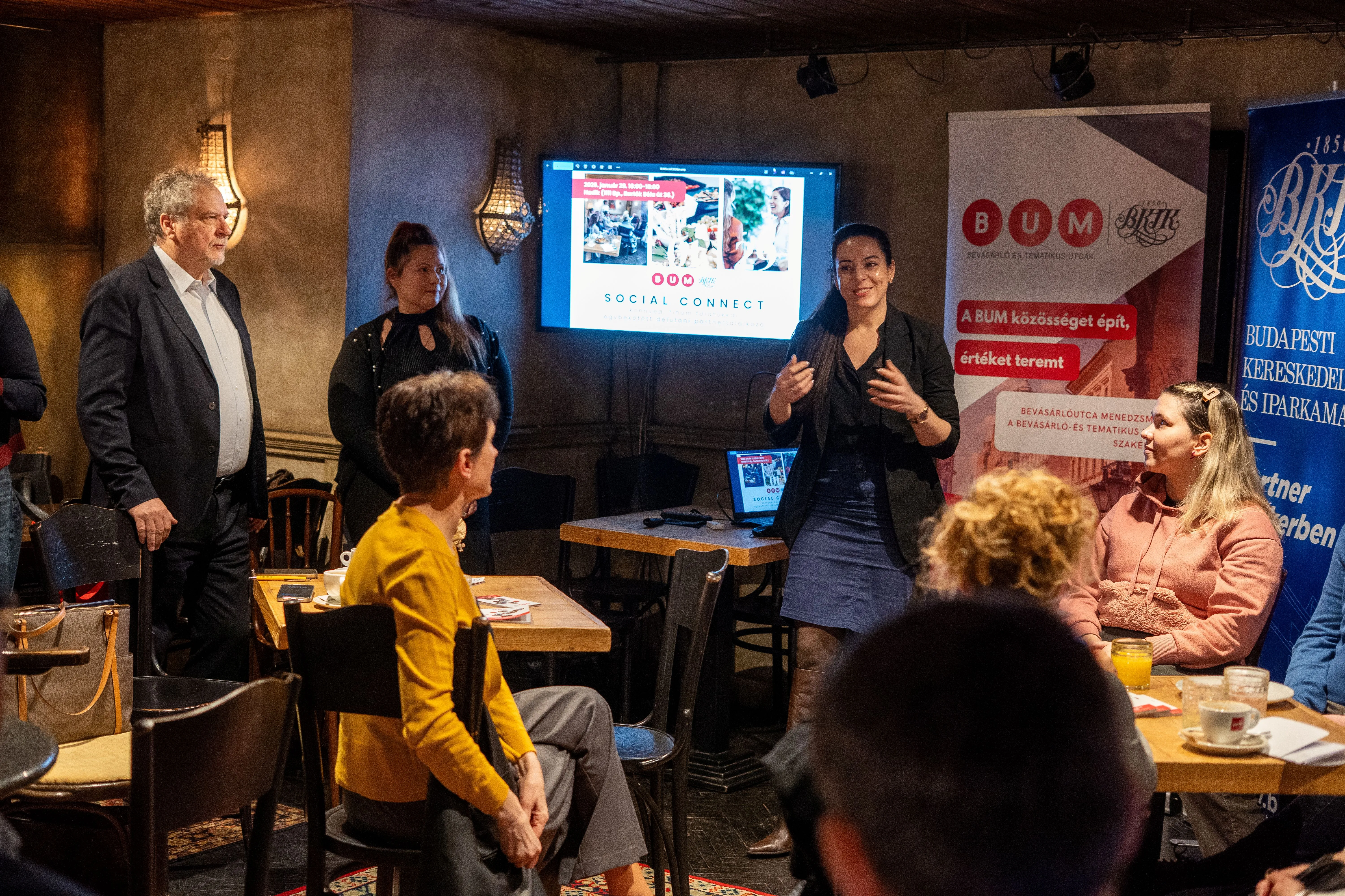 A program zárásaként kötetlen networking következett, amely lehetőséget adott a résztvevőknek az informális beszélgetésekre, új kapcsolatok kialakítására és meglévő együttműködések elmélyítésére. A januári BUM Social Connect esemény megerősítette, hogy a szakmai tartalom, a közösségi élmény és a kulturális inspiráció együttesen képes olyan platformot teremteni, amely hosszú távon is értéket ad a városi kereskedelem és a partnerségi hálózat fejlődéséhez.
