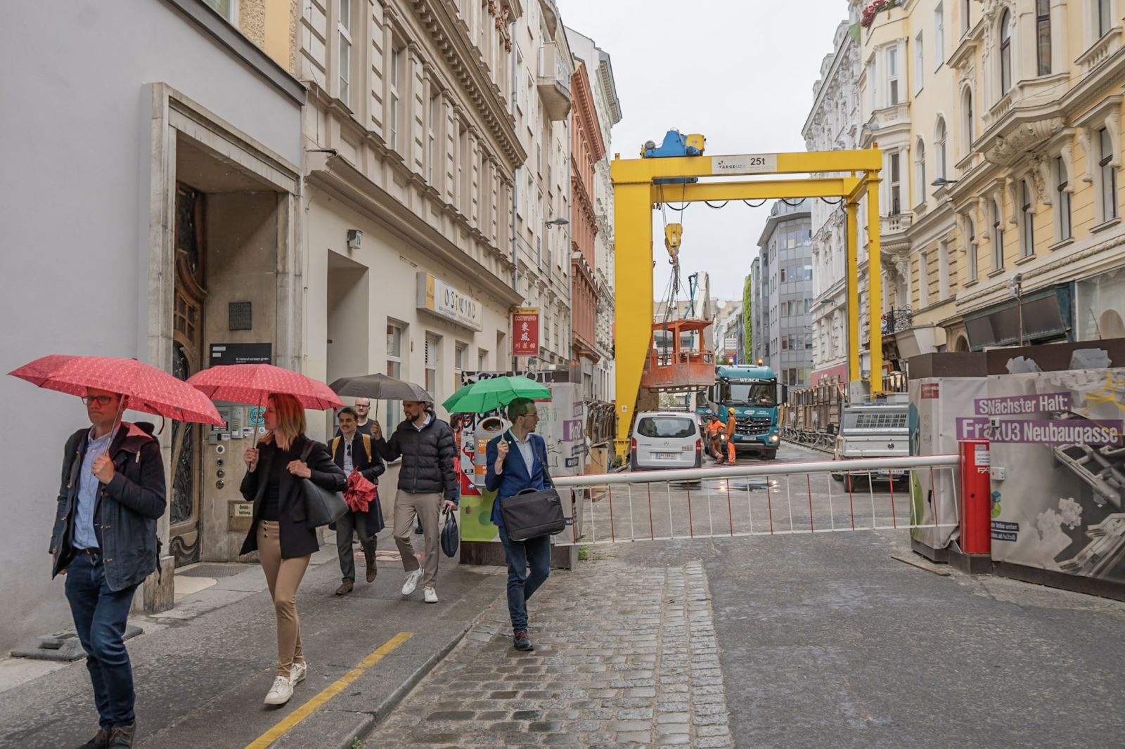 After a bit of refreshment, we continued our journey to the center of Vienna and first visited the 7th district under the guidance of Markus Frömmel, joined by Marie-Therese Croy-Dülmen-Gumprecht. Here we saw metro construction sites and were told how important it is to ensure the functioning of the businesses there during this time. They no longer close off the area, as they did many years ago, and use transparent protective walls to prevent an alley-like passage next to the shops. Additionally, they receive support and rent compensation, as well as small gifts to offer to customers. Moreover, they also organize events periodically, which encourages people to dare to enter these areas and use the services of the businesses present. In this, of course, not only the Chamber but also the city of Vienna is a cooperating partner.