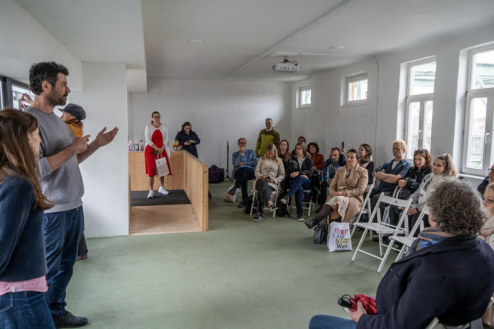 From there, we went out to the 15th district, where we looked at the project previously presented by the representative of Kreative Räume (Uli Fries). Stadtraum Mitte 15 was an old abandoned railway station, plagued by crime and an entirely unacceptable environment. With the ÖBB as the owner, the local municipality, and Kreative Räume's joint efforts, the building has been made usable and is rented out for community purposes for organizing various cultural events. Thus, there are exhibitions, professional presentations, yoga courses, and anything that is open to the community. Naturally, besides the building itself, the surrounding area was also restored, thus it has once again become part of the city, and the previous problems have ceased. Just by restoring it, giving it a function, and assigning an owner, this can serve as a really good example at home, in certain areas of Budapest.